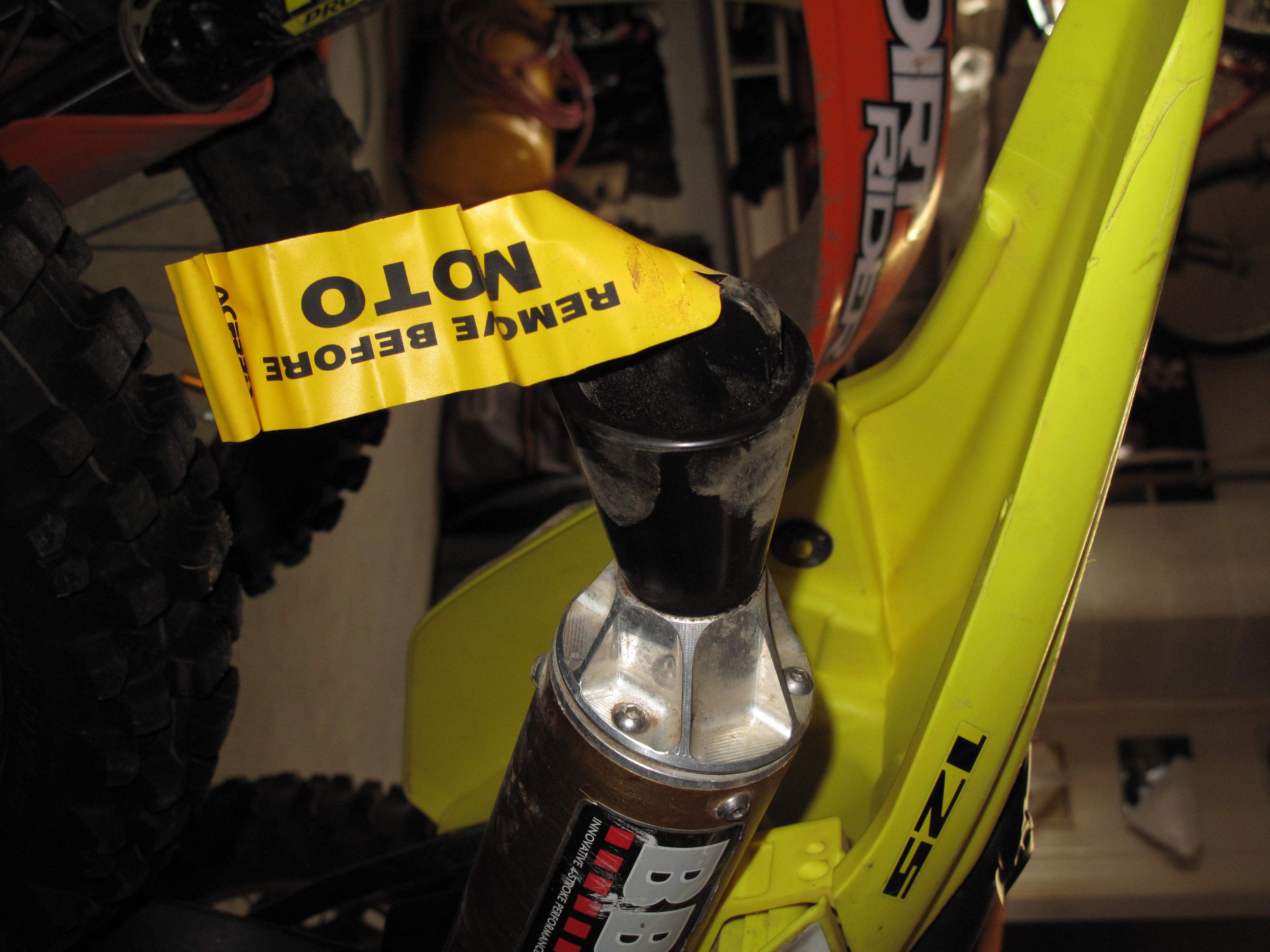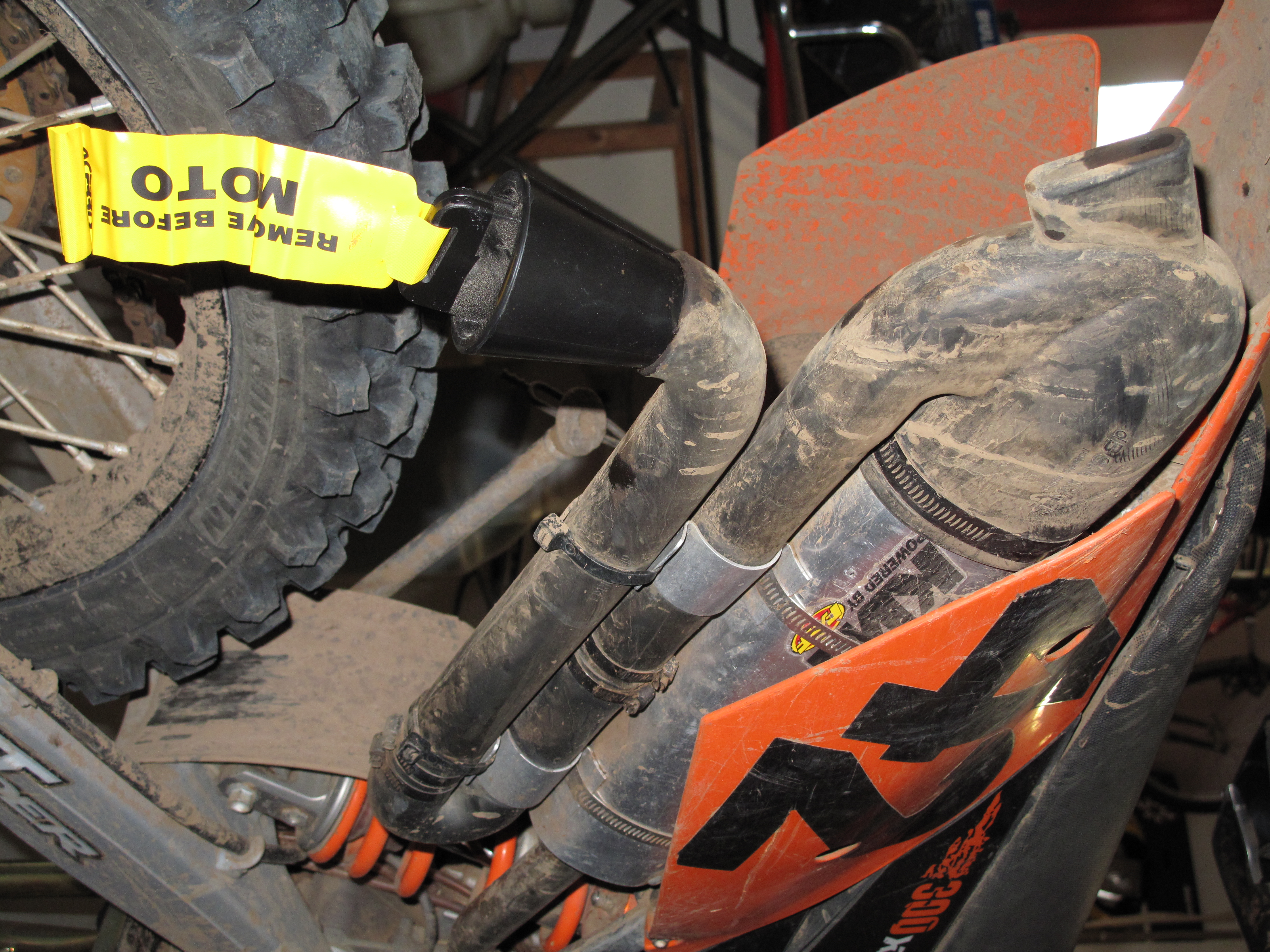 Jr’s bestowed upon me a brand new exhaust plug. Joy! Let’s see... Won’t fit the 450 (Leo Vince exhaust with a screen) so that’s right out. Let’s try the 300...