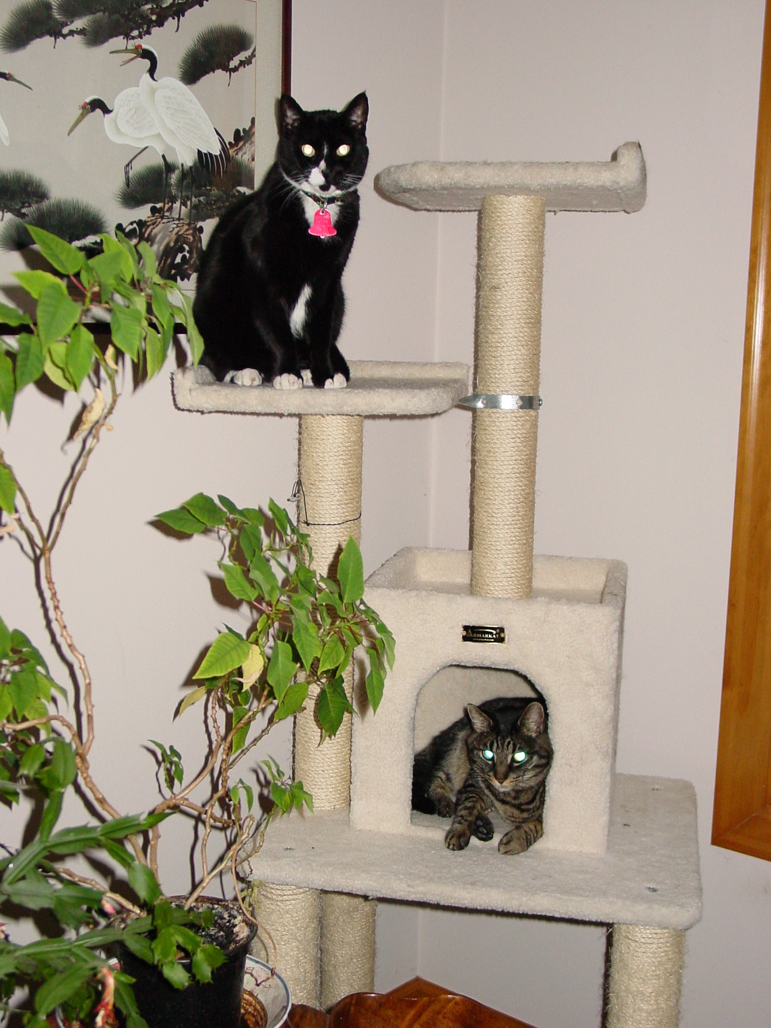 I had to take this shot. Spike above, mike in his cubby. Thank’s to my sis for the awsome cat lounge. They love it!