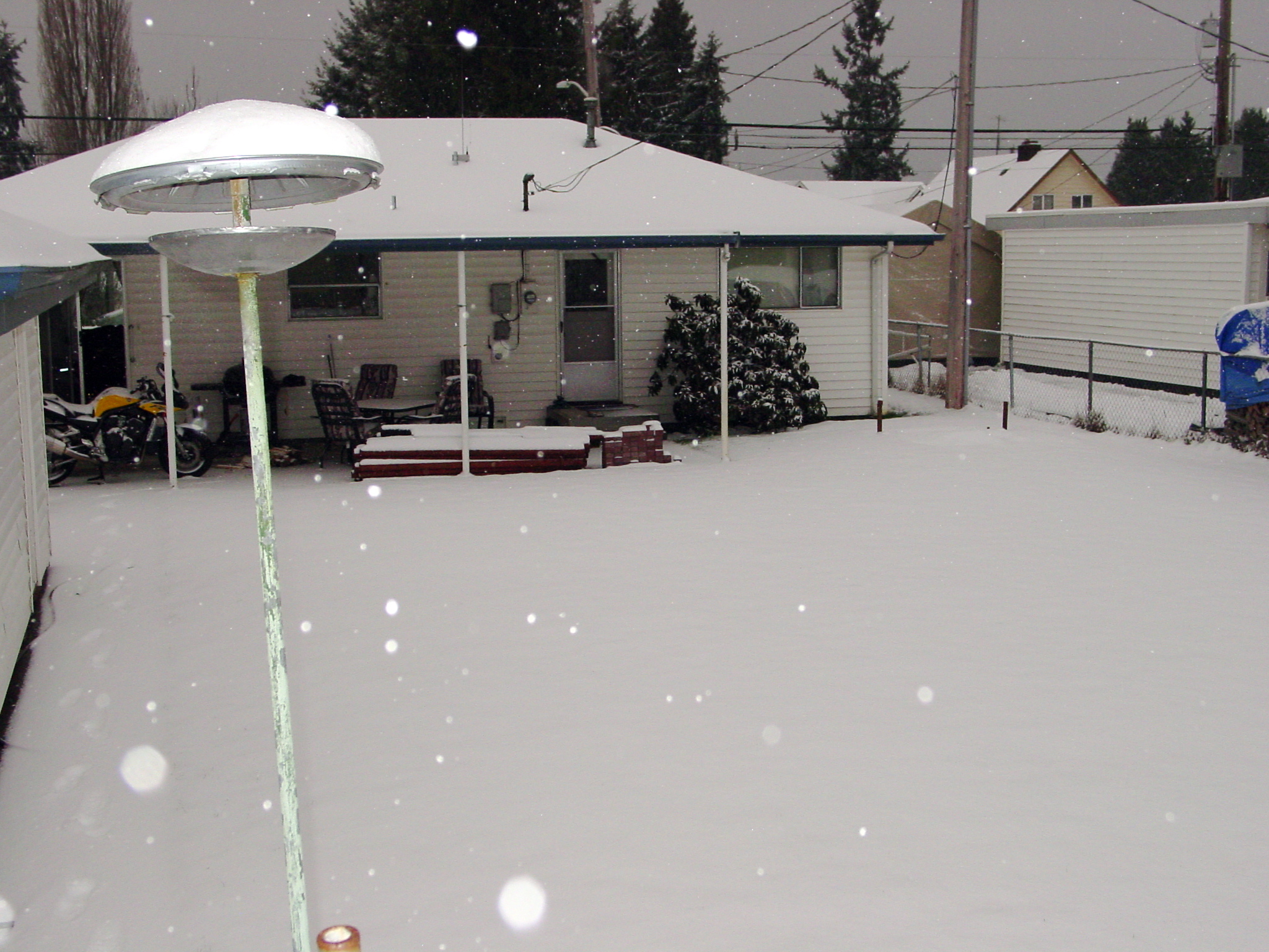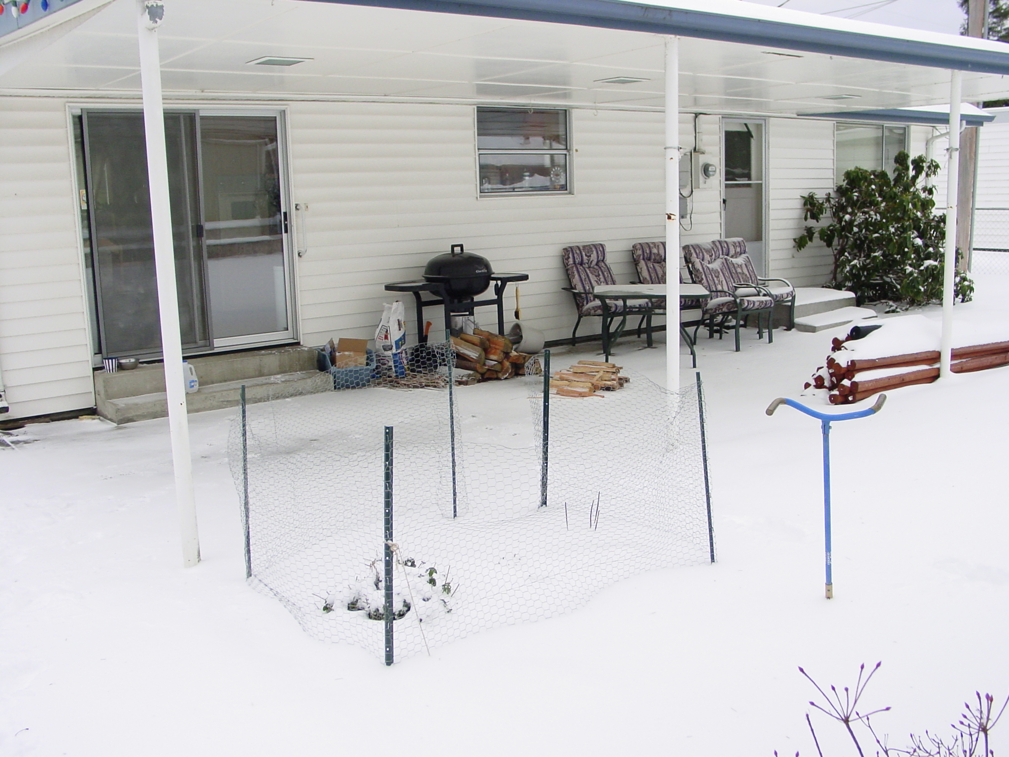 The wind was indeed blowing last night to get snow this far under the patio cover.
